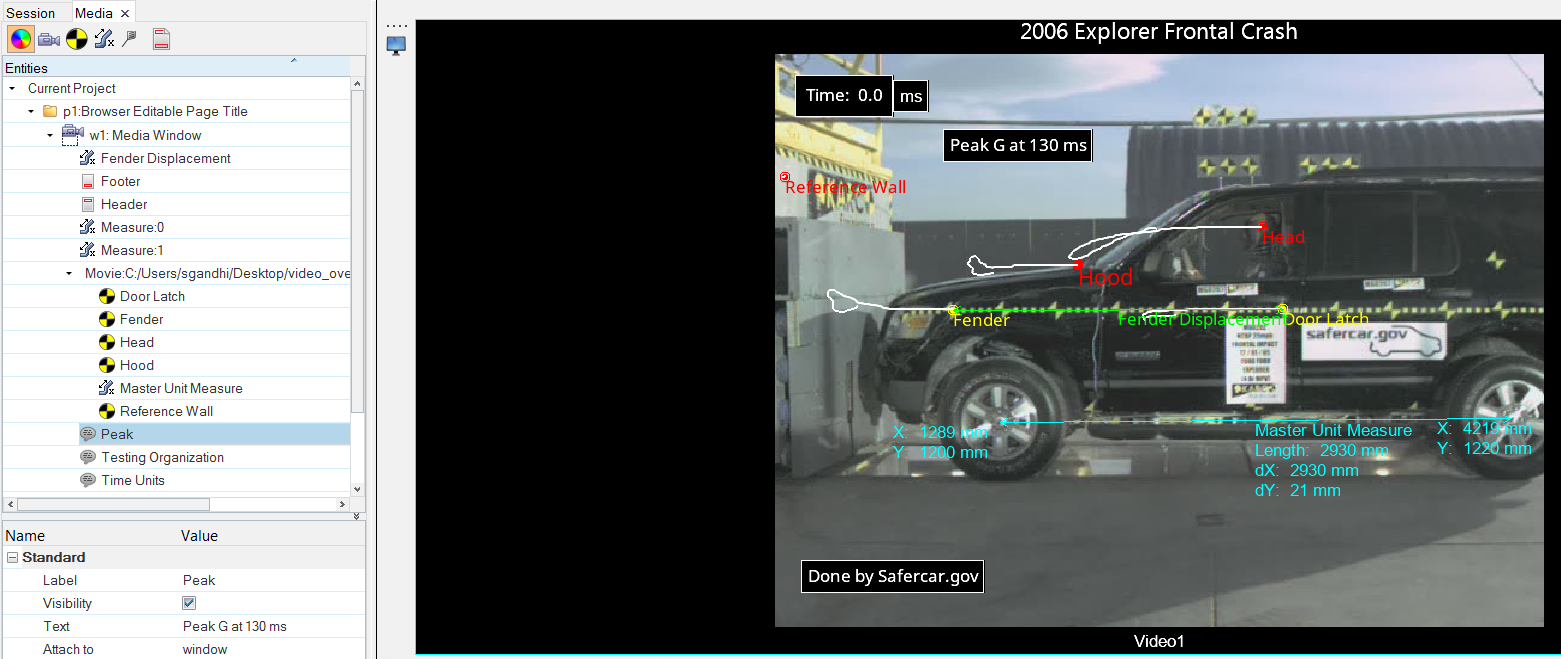 例えば、下の画像では、3つの注釈とマーカーがMediaブラウザに表示され、グラフィックスウィンドウに表示されています。w1:Media Windowの下にリストされている各注釈の横のアイコンは通常表示で、グラフィックス領域に注釈が表示されることを示しています。
