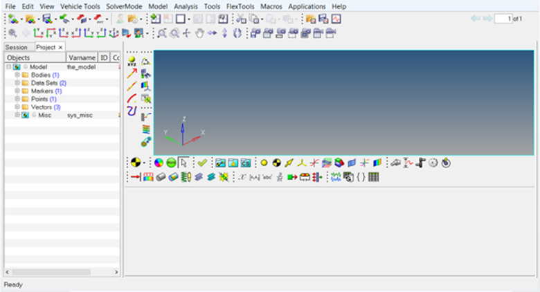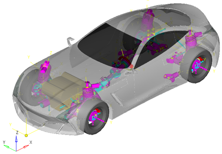 注: Aerodynamic Forcesは、現在、1つのシステムとして組み込まれています。 - Assembly Wizardを介した空力システム構築などのドライバモデルを含むフルビークルがグラフィックス領域に表示されます。