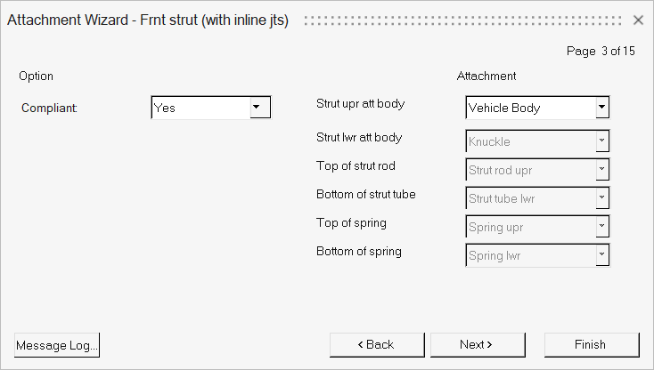 アセンブリプロセス(Assembly Wizardダイアログを使用)で指定したアタッチメントは、アセンブリリボンにあるAttachment Wizardを使用して変更できます。Attachment Wizardダイアログは、モデルアタッチメントの変更プロセスの手順に沿って設定手順を示します。