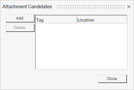 このオプションは、アタッチメント上のアタッチメントタグと同じ文字列をもつアタッチメント候補を含んだエンティティを探し出し、1つのコンテナについてすべてのアタッチメントを自動的に選択します。1つのアタッチメントについて複数の候補がある場合、手動で選択が可能なダイアログが表示されます。