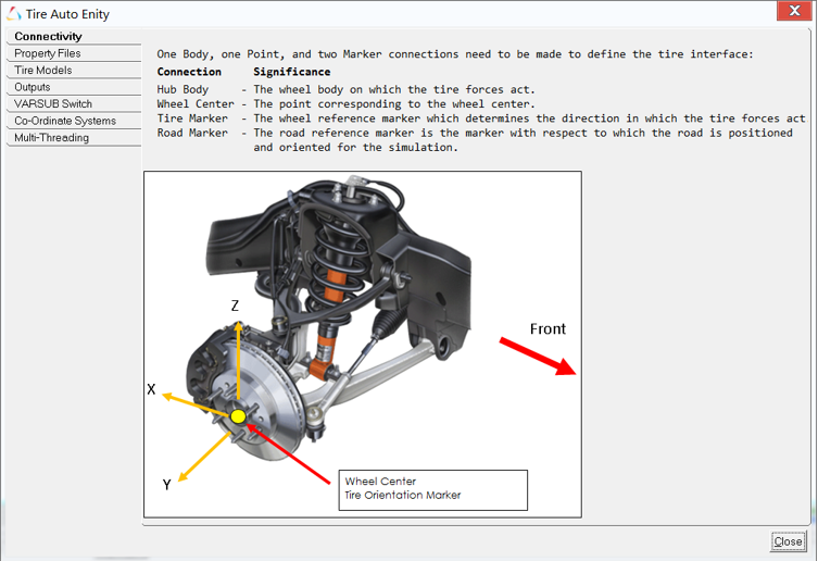 “VARSUBスイッチ”を“オン”にすることによって、タイヤの内部状態にアクセスできます。この内部状態はソルバー変数として用意されています。これらの内部状態にアクセスするには、次のシンタックスを使用します: