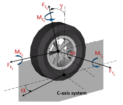 ISO軸座標系を基準とした、タイヤ接触パッチにおけるタイヤのフォースとモーメント。 | フォース フォース*長さ |