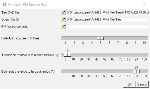 注: -tolパラメータと-dbeltパラメータに関する追加の詳細については、PM-FlexTireのユーザーマニュアルをご参照ください。