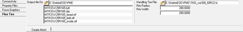 メッシュの作成 | タイヤのメッシュファイルを作成するためのGenerate PM-FlexTire filesユーティリティを表示します。![]()