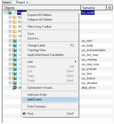 モデルブラウザでモデルを右クリックして、Add Eventsをクリックします。