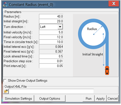 Constant Radiusイベントのパラメータが表示されます。