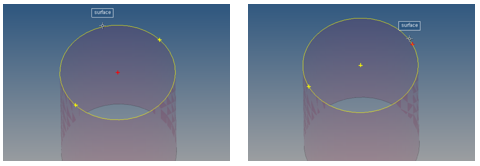 上述のグラフィックエンティティ(Cylinder、BoxまたはCADGraphic)のエッジまたはサーフェス上にマウスカーソルを合わせます。ポイントが作成される場所が十字マークで示されます。