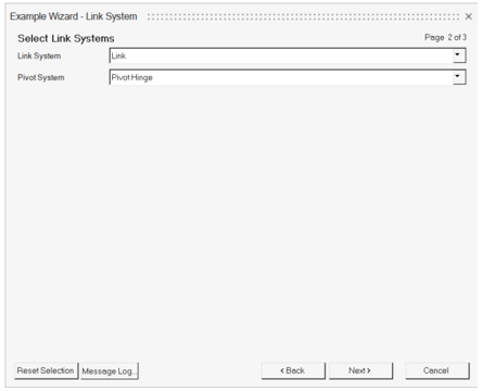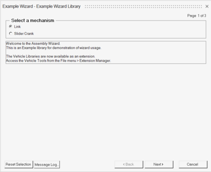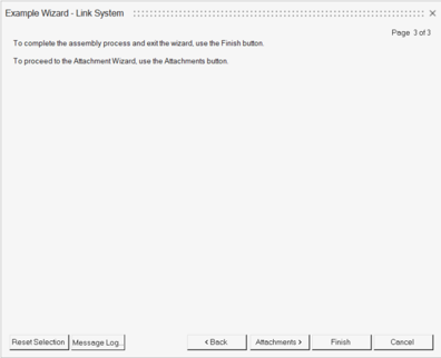 ウィザードには複数のBeginPanelブロックを含めることができます。終了時に、MotionViewは各パネルで選択されたシステムをインスタンス化します。また、アタッチメントの解決も行います。