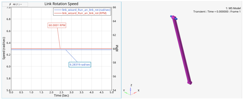 ピボットヒンジの回転ジョイントに一定速度モーションを適用します。ウィザードの構築時、このアナリシスは、Pivot Systemがヒンジタイプである場合にのみ使用可能です。