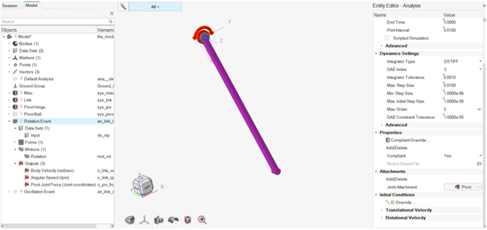 システムがインポートされたら、他の通常のMotionViewモデルと同様にこのモデルをさらに編集できます。保存を行うと、ウィザードでの選択内容がMDLに保存されます。