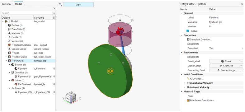 このスライダークランクモデルも、上記と同じプロセスに従って構築されます。このモデルは次の2つのシステムで編成されます。