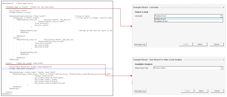 4. MDLウィザード言語を使用して、モデルに関連するイベントまたはアナリシスを含むTask Wizardファイルを作成します。