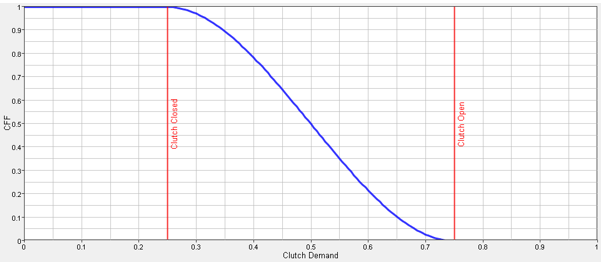 クラッチ要求は、クラッチペダルに対するドライバーの入力です。クラッチ要求は無次元であり、0のクラッチ要求はドライバーがクラッチペダルから足を離していることを表し、1のクラッチ要求はドライバーがクラッチペダルを床まで踏み込んでいることを表します。クラッチスリップ状態の導関数は、次の方程式によって決定されます: