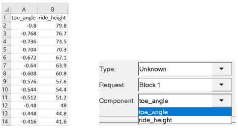 タイプ ファイルパス 説明 Excel .csv CSV(コンマ区切り値)形式。CSVは、ほとんどのスプレッドシートアプリケーションと互換可能。データはコンマ区切り。 Columns .col Xデータとして1列、Yデータとしてもう1列。空白ラインは、プロット内の各カーブを分離。データはタブ区切り。 XY Data .dat Xデータとして1列、Yデータとしてもう1列。プロット内の各カーブ用のデータセットは、XYDATAで始まりENDATAで終わる。XYの単位および軸ラベルは、各データセットの上部に含まれる。データはタブ区切り。HyperMeshではこの形式が使用されます。 X Graph .xrg Xデータとして1列、Yデータとしてもう1列。XYの単位および軸ラベルは、各データセットの上部のコメントとして含まれる。データはタブ区切り。 まとめ .sum サマリーファイルには、プロットタイトルと共に、プロット内のカーブ、XとYのデータラベル、および各カーブの最小値と最大値をリストアップするテーブルが含まれる。 ADAMS Spline .adm 各カーブのX値がコンマ区切りの列に、続いて、Y値がコンマ区切りの列にリストされる。ファイル内の最初のデータセットは、SPLINE/0とラベル付けされる。連続する各データセットのラベルは1ずつ増加。 Altair Binary .abf ウィンドウ内のすべてのカーブがAltair Binaryフォーマットファイルへ書き出される。 DAC .dac DACファイルにカーブデータをエクスポート。カーブ1つにつき、1ファイル。複数のカーブをリクエストすると、一意のリクエスト名をファイル名に追加して、出力ファイルの名前が修正されます。 RPC .rsp RPCファイルにカーブデータをエクスポート。すべてのカーブが1つのファイルにエクスポートされる。 Excel Europe .csv CSV拡張子付きのファイルを書き出しますが、列の区切りにコンマではなくセミコロンを使用します。 User-specified formats . ユーザー指定のインポートテンプレートおよび外部リーダーを作成します。
