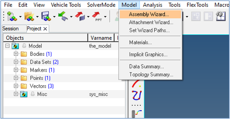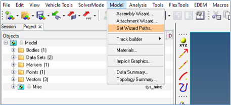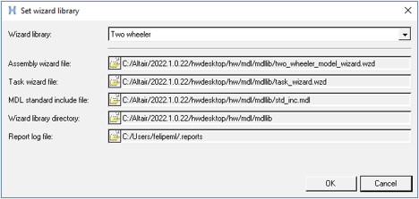 モデルメニューから、Set Wizard Pathsを選択し、Two wheeler Wizard Libraryを設定します。