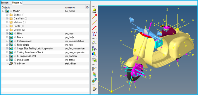 車両構築プロセスを完了すると、ICエンジンとCVTを含むスクーターモデルがMotionViewにロードされます:図 6.