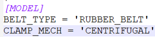 CLAMP_MECHの値が‘CENTRIFUGAL’以外の場合、モデルに対してクランプ力の値をユーザーが入力する必要があります。クランプ力は、下の図に示すソルバー変数を使用してモデルに入力できます。図 6.