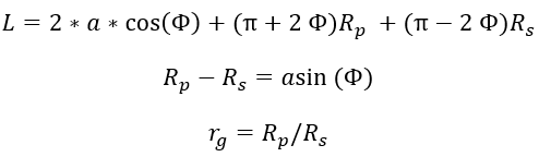 下の図は、プーリーの半径、ラップ角および
