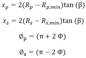 下の式はモデル内の幾何学的拘束を表すものです。簡略化すると、最終的な式が実行半径と角度
