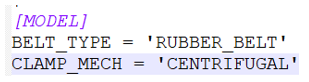 BELT_TYPE | バリエーターのベルトのタイプ(ゴム、鋼など)。現在はこのパラメータの値に関係なくベルトは剛体と見なされる。 | ||
