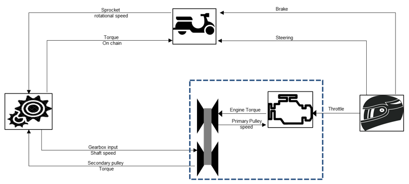 CLAMP_MECHの値が‘CENTRIFUGAL’以外の場合、クランプ力の値は計算されないので、ユーザーがモデルに入力する必要があります。図 1. CVTパワートレインの図