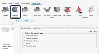 2. Vehicle Toolsリボンで、AssemblyツールをクリックしてAssembly Wizardを開きます。