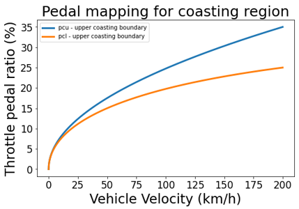 7. スロットルペダルの上下の惰行境界とさまざまな車両速度のマッピング