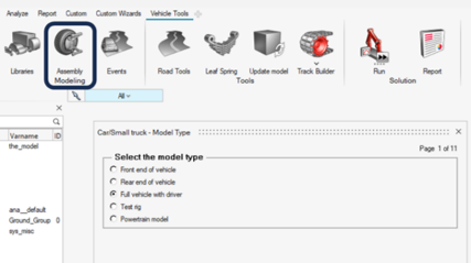 - Vehicle Toolsリボンで、AssemblyツールをクリックしてAssembly Wizardを開きます。