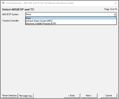- Select ABS/ESP and TCで、Electronic Stability Program (ESP)オプションを選択できます。