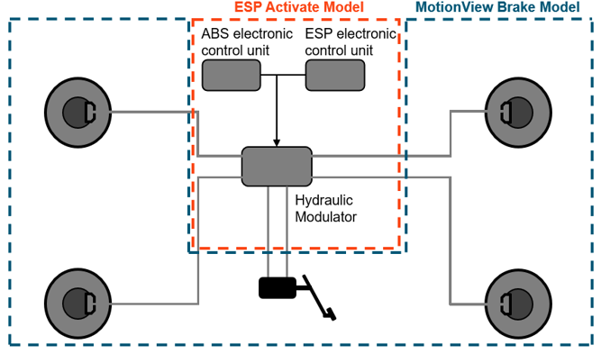 前述したように、ESPのアクチュエーターは車両のブレーキシステムです。目的の車両のヨーモーメントは、個別のホイール制動によって作成されます。