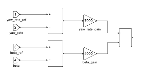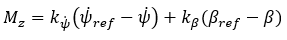 - 前述したように、ESPは、ヨーレートと横滑り角の誤差を使用して、目的の車両のヨーモーメントを生成します。つまり、制御法則は次のような比例コントローラとして表すことができます。