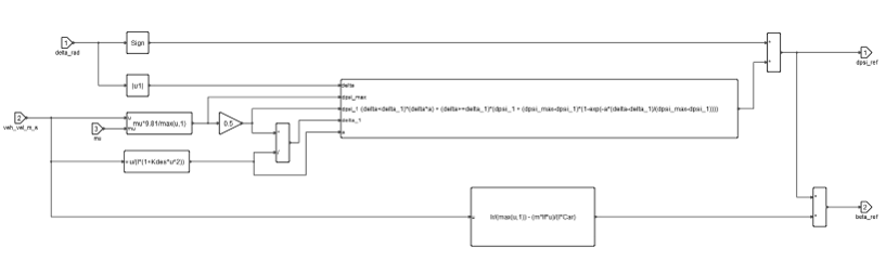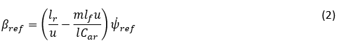 - ヨーレートと横滑り角の基準値は、単一トラック車両モデルの動きの定常状態方程式を線形化することによって得られます。