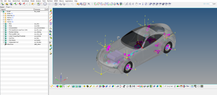 - Assembly Wizardの選択を完了すると、Altair DriverとElectronic Stability Programを搭載したフルビークルモデルが得られます。