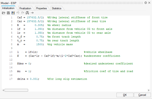 信号を除いて、一部のパラメータを次のようにTwin Activateにおけるモデル初期化で設定する必要もあります。図 6. Twin ActivateでのESPパラメータ