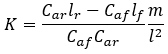 は目的のアンダーステアリング係数です。車両の実際のアンダーステアリング係数は、次の式で計算できます: