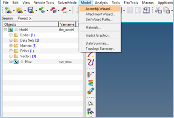 - ModelメニューからAssembly Wizardを選択します。