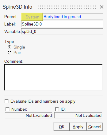 Number | 各エンティティまたはシステムにはそれぞれ整数の番号が割り当てられ、識別が必要な場合に、この番号が使用されます。ユーザーがエンティティに番号を割り当てていない場合、ソルバー入力デック書き出しの際に番号欄が空白であると、自動的に番号が割り当てられます。エンティティペアについては、ペア内の各エンティティに割り当てられた右と左の番号がそれぞれリストされます。 |