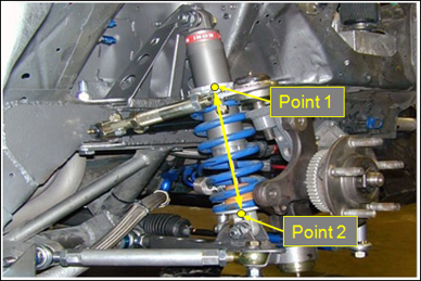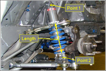 - 同様に、2番目のポイントを選択します。通常、空気ばねはシャシーと車軸の間で作動します。Body 1のPoint 1は空気ばねの上部を定義するのに対して、Body 2のPoint 2は空気ばねの下部を定義します。