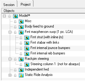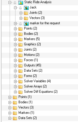 Static Ride Analysisイベントには、ライドイベントを作成するためのさまざまなMotionViewモデリング要素が用意されています。図 7.
