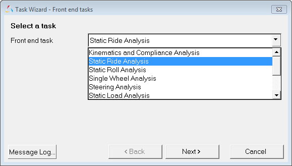 このモデルではStatic Ride Analysisを選択します。