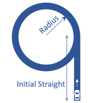 不定 直進 車両は導入長の距離を直進します。この距離は、円周の¼です。速度は、目標の横加速度とトラック半径を使用して計算されます。