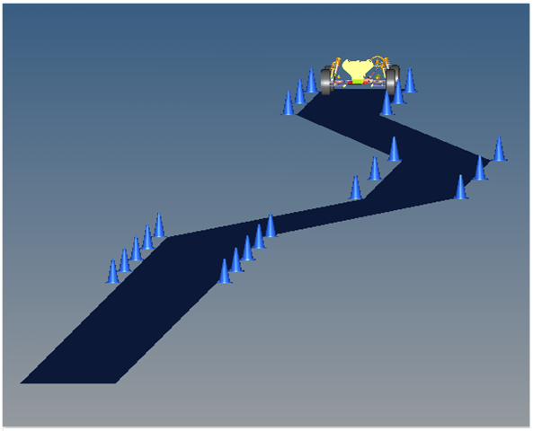 Double Lane Change eventは、1つのソルバー変数のSteer Path変数のみで構成されています。この変数は、必要な経路に沿って走行するためにハンドルに入力を適用するユーザーサブルーチンを呼び出します。