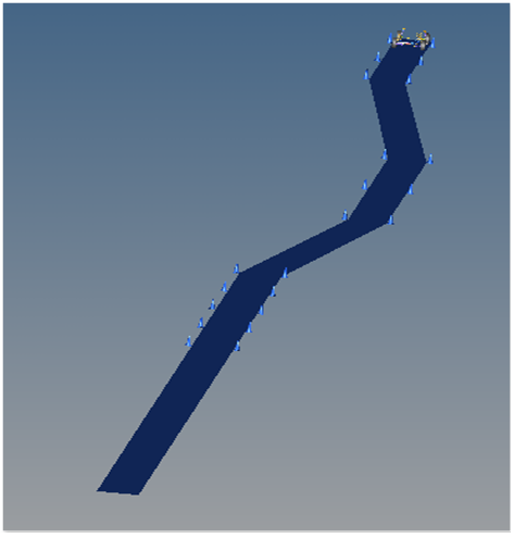 このイベントにはカーブが1つ組み込まれています。このカーブは、経路のセンターラインを定義するユーザー作成のCURSUBです。Full Vehicle Dataデータセットに入力した経路寸法を使用して、Lane Parametersソルバー配列を定義します。ソルバー配列のIDは、カーブ形状を生成するCURSUBサブルーチンに渡されます。