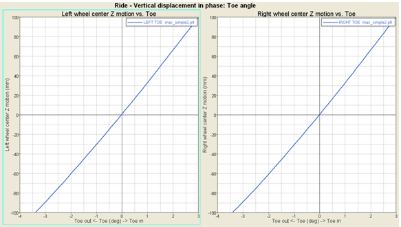 HyperGraphを使用してサスペンション設計係数をプロットできます。このデータは、MotionSolveから書き込まれた.reqファイルまたは.abfファイルにあります。以下にサンプルプロットを示します: