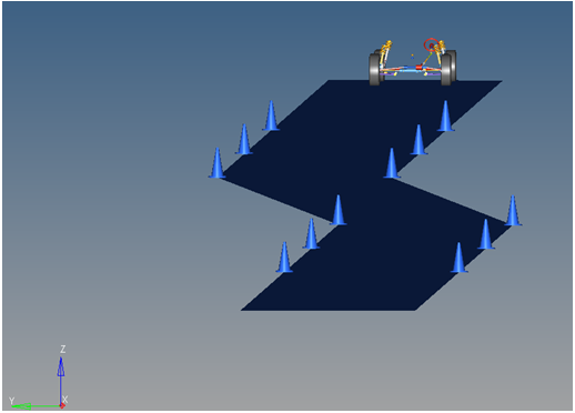 3つのモーションがイベントに組み込まれています。車両に対するステアリングモーションは、ステアコントローラーによって提供され、ステアリングコラムを車体に接合する回転ジョイントに作用します。モデルにステアリングコラムがない場合、このジョイントはステアリングラック入力軸と車体の間で機能します。