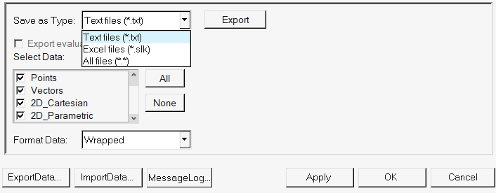 Export Dataダイアログを使用すると、データをExcelファイルまたはテキストファイルにエクスポートできます。