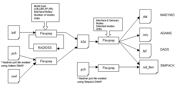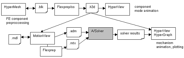 動解析を実行すると、MotionViewによって、ソルバー入力ファイルと、弾性パートごとに1つの弾性体モーダルファイル(ADAMSのMTXファイルなど)が生成されます。これらのファイルを動解析ソルバーで使用できます。