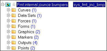 フロント内部jounce bumperシステムでは、XZ平面を中心として対称な2つのマーカーが使用されています(フォース方向参照マーカーと変位参照マーカー)。
