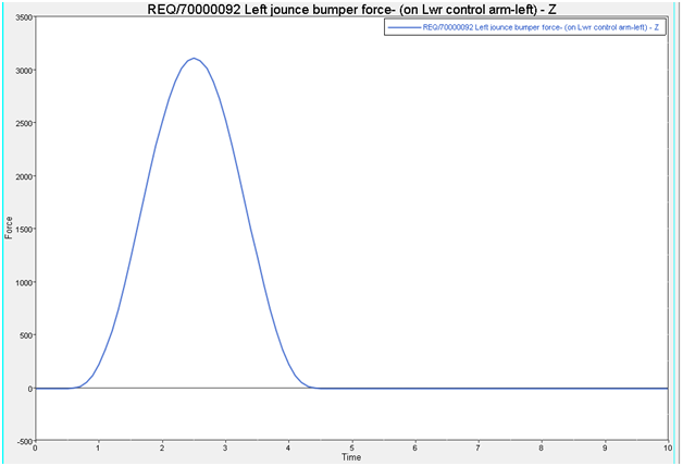 - サスペンションの左側でのjounce bumperのフォースです。バンパーが動作しているとき、ボディが離れる方向にフォースが作用します。フォースは、フォース要素の両方のパートについてレポートされ、それらのフォースは同じ大きさで反対方向となります。