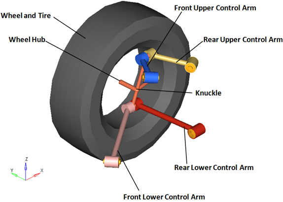 front multi-linkサスペンションは、以下の図に示すボディで構成されています。 図 5. 右側のボディ – フロントマルチリンク式サスペンション